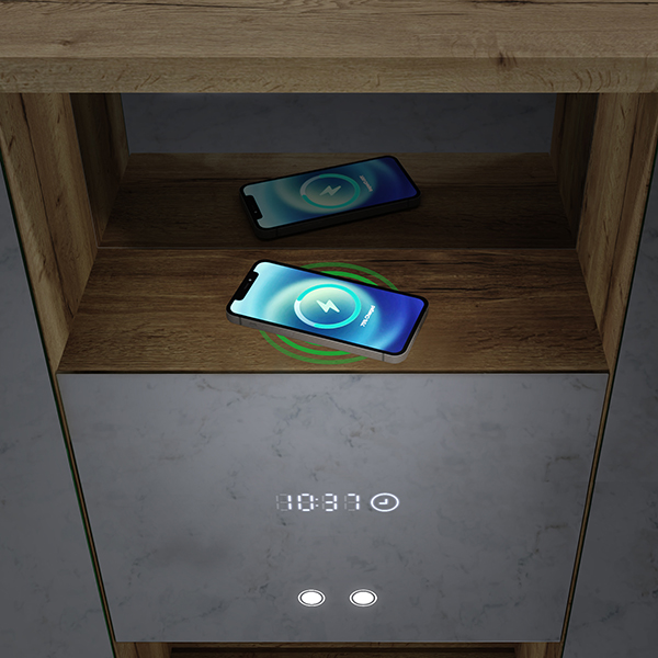Nézze meg a további kényelmi lehetőségeket – az induktív töltő hatékonyan tölti az okostelefont, az elektromos csatlakozóaljzat pedig kényelmes helyet biztosít a hajszárító csatlakoztatásához.